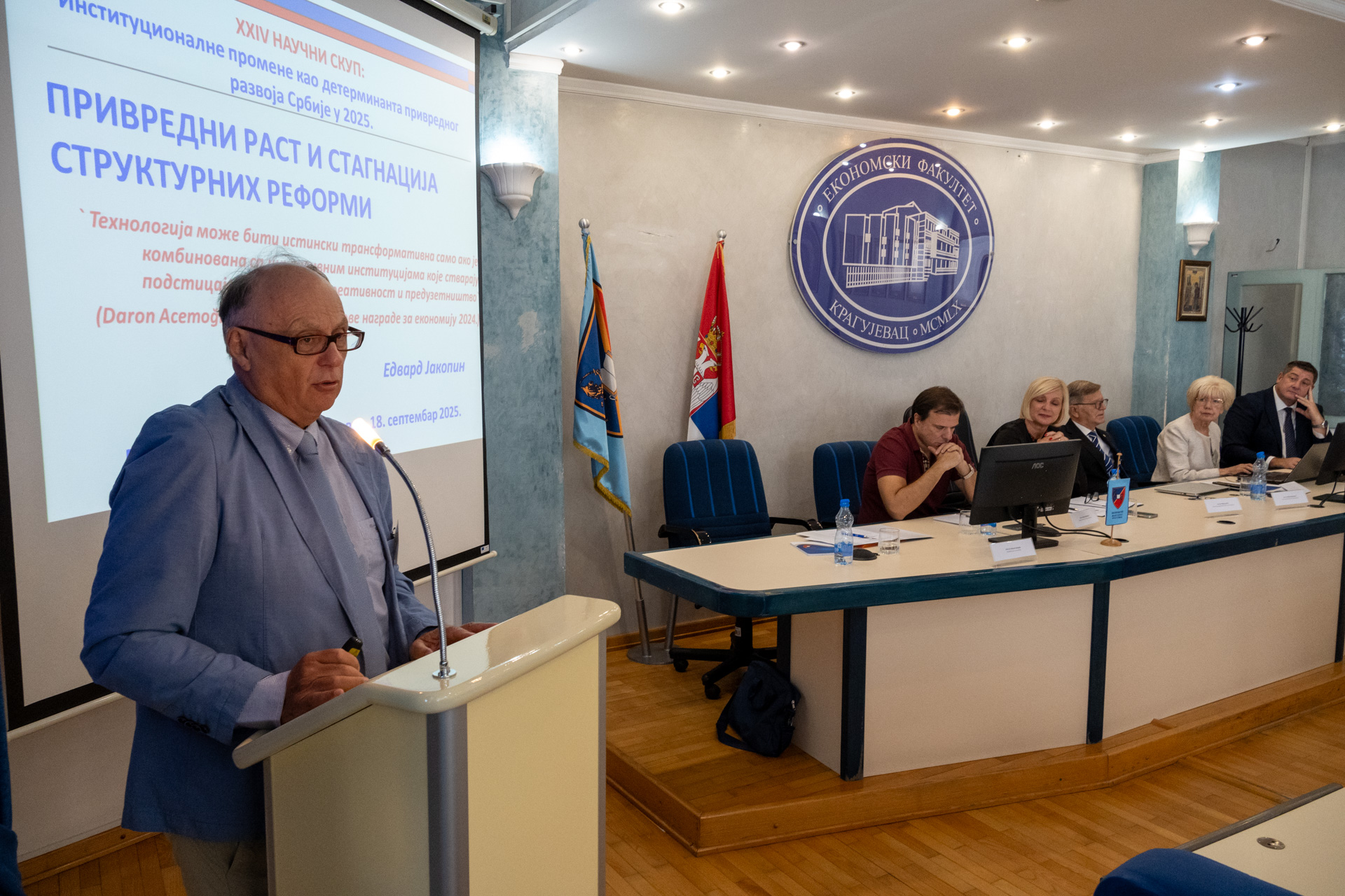 У петак, 19. септембра 2025. године, на Економском факултету Универзитета у Крагујевцу одржан је XXIV научни скуп Институционалне промене као детерминанта привредног развоја Републике Србије, у организацији Савеза економиста Србије и Економског факултета Универзитета у Крагујевцу. Научни скуп је окупио бројне истраживаче и научнике са Економског факултета Универзитета у Крагујевцу, Економског факултета Универзитета у Нишу, Државног Универзитета у Новом Пазару, Универзитета у Приштини са привременим седиштем у Косовској Митровици, Универзитета у Источном Сарајеву, Факултета политичких наука у Београду, Универзитета “Унион- Никола Тесла” Београд, Универзитета Метрополитан Београд.